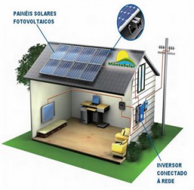 Através de uma tecnologia chamada fotovoltaica, ou seja, luz transformada em eletricidade. Para fazer isto, são utilizadas células solares formadas por duas camadas de materiais semi-condutores, uma positiva e outra negativa. Ao atingir a célula, os fótons da luz excitam os elétrons, gerando eletricidade. Quanto maior a intensidade do sol, maior o fluxo de eletricidade. O material mais comumente utilizado é o silÃcio. Por ser o segundo elemento mais abundante da face da terra, não há limites com relação à matéria-prima para produção de células solares. A eletricidade gerada pelas células está em corrente contÃnua, que pode ser imediatamente usada ou armazenada em baterias. Em sistemas conectados a rede, a energia gerada precisa passar por um equipamento chamado inversor , que irá converter a corrente continua em alternada com as caracterÃsticas (frequência, conteúdo de harmônicos, forma da onda, etc) necessárias para atender as condições impostas pela rede elétrica pública. Assim, a energia que não for consumida pode também ser lançada na rede.